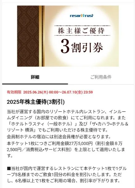 株主優待券(飲食)
